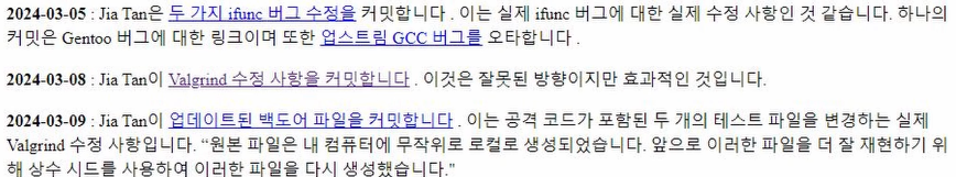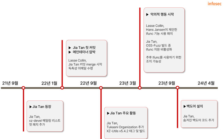 전체적으로 큰 흐름이다. 년도만 봐도 지아탄이 첫 패치를 추가한 21년도부터 시작해 백도어가 발견되는 24년까지 장장 3년에 걸친 오랜 시간을 지아탄이 공들인 사건이라고 볼 수 있다. 대단하다.. 여러모로