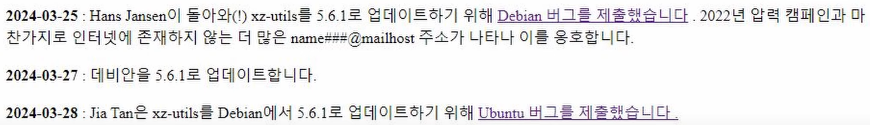 2024년 3월 25일 전에 압박메일을 보내던 사람 중 한 명인 Hans Jansen이 돌아와 xz 유틸리티를 5.6.1 버전으로 업데이트해달라고 요청한다.
